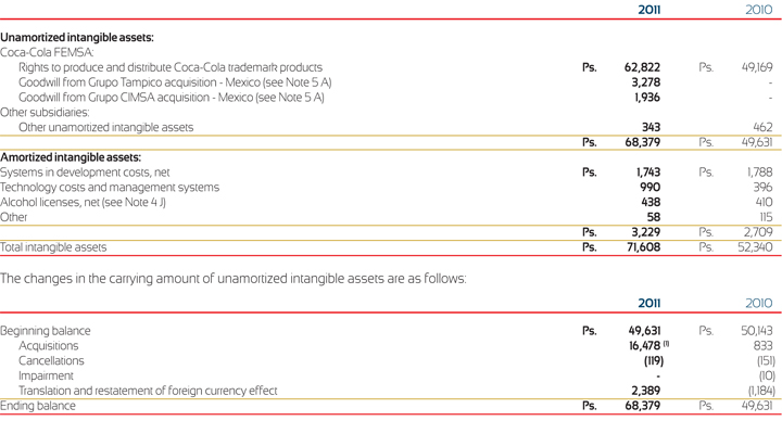 (1) Includes Ps. 8,078 and Ps. 8,164 for acquisitions of Grupo Tampico and Grupo CIMSA, respectively (see Note 5 A).