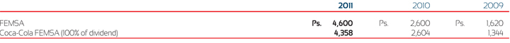 As of December 31, 2011, 2010 and 2009 the dividends declared and paid by the Company and Coca-Cola FEMSA were as follows:
