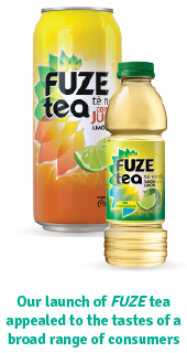 Our growing and evolving insights into consumer needs and preferences drive our portfolio strategy across our markets. As a result, together with our partner The Coca-Cola Company, in 2012, we introduced a number of new products and presentations to satisfy consumer demand in multiple beverage categories. During May 2012, we carried out a system-wide launch of FUZE tea, a fusion of tea with natural fruit flavors, in a variety of presentations across our franchise territories in Mexico, Colombia, Venezuela, Panama, Costa Rica, and Nicaragua. Thanks to our operations' successful implementation of our integrated marketing strategies—including innovative advertising, sales promotions, and point-of-sale materials—we doubled the historic point-of-sale coverage of the previous brand, attracted a broader base of consumers, and drove consolidated year-over-year volume growth of 25% in the ready-to-drink tea category.