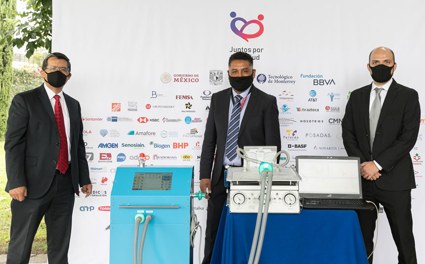 After Mexico recorded its first case of the coronavirus at the end of February 2020, the demand for medical supplies – including masks, plastic face shields and mechanical respirators – grew quickly, despite limited supplies. To address this critical need, Juntos por la Salud was launched as a public-private initiative to protect the health of hospital personnel, Mexican security forces, and the employees, suppliers, customers and consumers of participating companies and organizations. As part of this effort, the Secretaría de Relaciones Exteriores (Ministry of Foreign Affairs) and the Salvador Zubirán National Institute of Medical Sciences and Nutrition INCMNSZ, by its Spanish acronym) called on private industry to design a mechanical respirator to be manufactured in Mexico. When FEMSA was presented with the opportunity to save lives in our community, there was no hesitation in answering the call of duty. In addition to the FEMSA Foundation, we also tapped FEMSA Strategic Businesses to take a leadership role, joining a team of 16 other companies and academic institutions, including Metalsa, GSE Biomedical, and the Tecnológico de Monterrey.