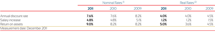 The Company annually evaluates the reasonableness of the assumptions used in its labor liabilities for employee benefits computations. Actuarial calculations for pension and retirement plans, seniority premiums, postretirement medical services and severance indemnity liabilities, as well as the cost for the period, were determined using the following long-term assumptions: