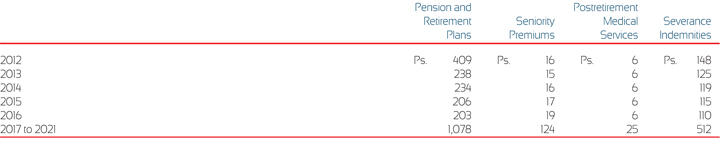 Based on these assumptions, the expected benefits to be paid in the following years are as follows:
