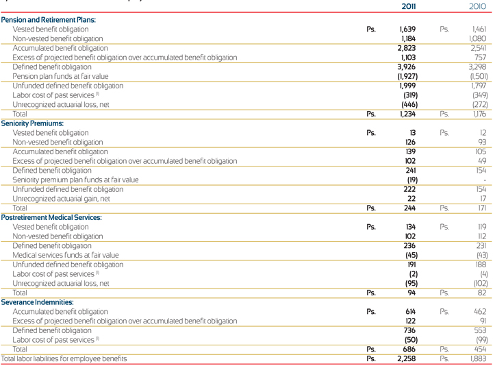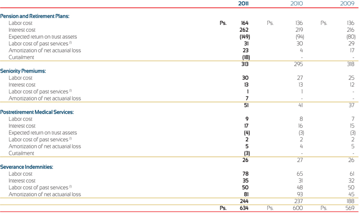 For the years ended December 31, 2011, 2010 and 2009. Amounts expressed in millions of U.S. dollars ($) and in millions of Mexican pesos (Ps.).