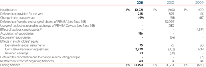 During 2009 and 2010, Brazil adopted new laws providing for certain tax amnesties. The tax amnesty programs offers Brazilian legal entities and individuals an opportunity to pay off their income tax and indirect tax debts under less stringent conditions than would normally apply. The amnesty programs also include a favorable option under which taxpayers may utilize income tax loss carry-forwards ("NOLs") when settling certain outstanding income tax and indirect tax debts. The Brazilian subsidiary of Coca-Cola FEMSA decided to participate in the amnesty programs allowing it to settle certain previously accrued indirect tax contingencies. During the years ended, December 31, 2010 and 2009 the Company de-recognized indirect tax contingency accruals of Ps. 333 and Ps. 433 respectively (see Note 24 C), making payments of Ps. 118 and Ps. 243, recording a credit to other expenses of Ps. 179 and Ps. 311 (see Note 18), reversing previously recorded Brazil valuation allowances against NOL's in 2009, and recording certain taxes recoverable. During 2011, there were no tax amnesty programs applied by the Company.