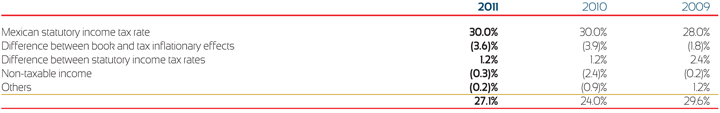 The statutory income tax rate in Mexico was 30% for 2011 and 2010, and 28% for 2009.