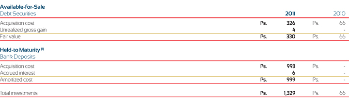 As of December 31, 2011 and 2010, cash equivalents amounted to Ps. 17,908 and Ps. 19,770, respectively.