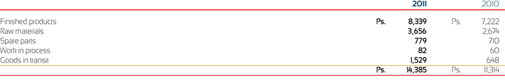 For the years ended December 31, 2011, 2010 and 2009. Amounts expressed in millions of U.S. dollars ($) and in millions of Mexican pesos (Ps.).