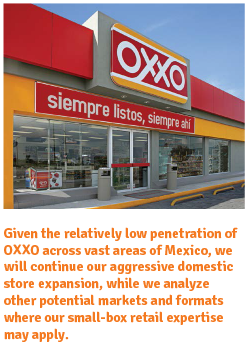 On top of our enhanced value proposition, we carried on building OXXO's leadership position as the largest and fastest growing small-format store chain in Latin America. In 2012, we surpassed the 10,000-store mark, opening 1,040 new stores for a total of 10,601—serving more than 8 million customers daily. Recognizing that it took us 20 years to reach our first 1,000 stores, this is a major landmark that not only illustrates how far we have come, but also how far we can grow. Given the relatively low penetration of OXXO across vast areas of Mexico, we will continue our aggressive domestic store expansion, while we continue to selectively test the small-box retail platform outside of the country. To this end, we continue to steadily fine-tune our value proposition in Colombia to satisfy local market needs and to analyze other potential markets and formats where our small-box retail expertise may apply.
