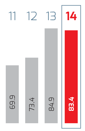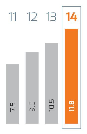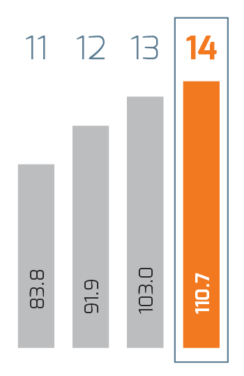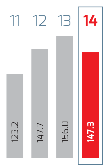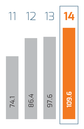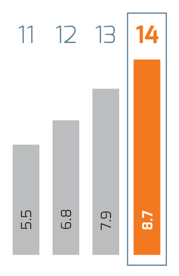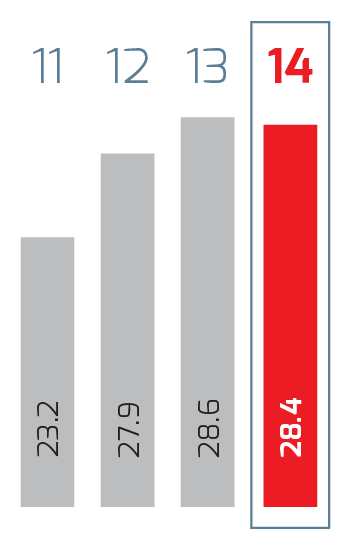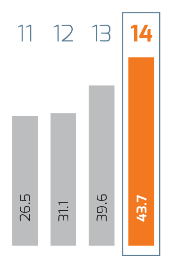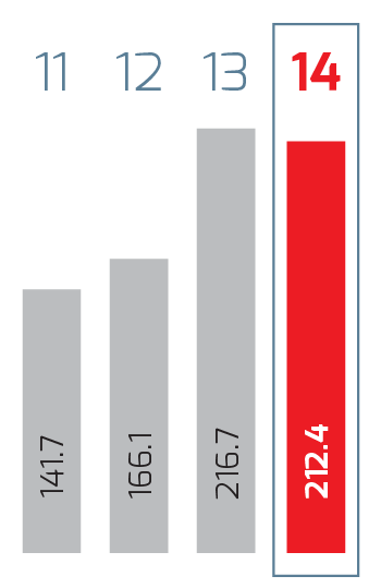 | Millions of pesos | 2014 1 | 2014 | 2013 | % Change | 2012 | % Change | 2011 2 |