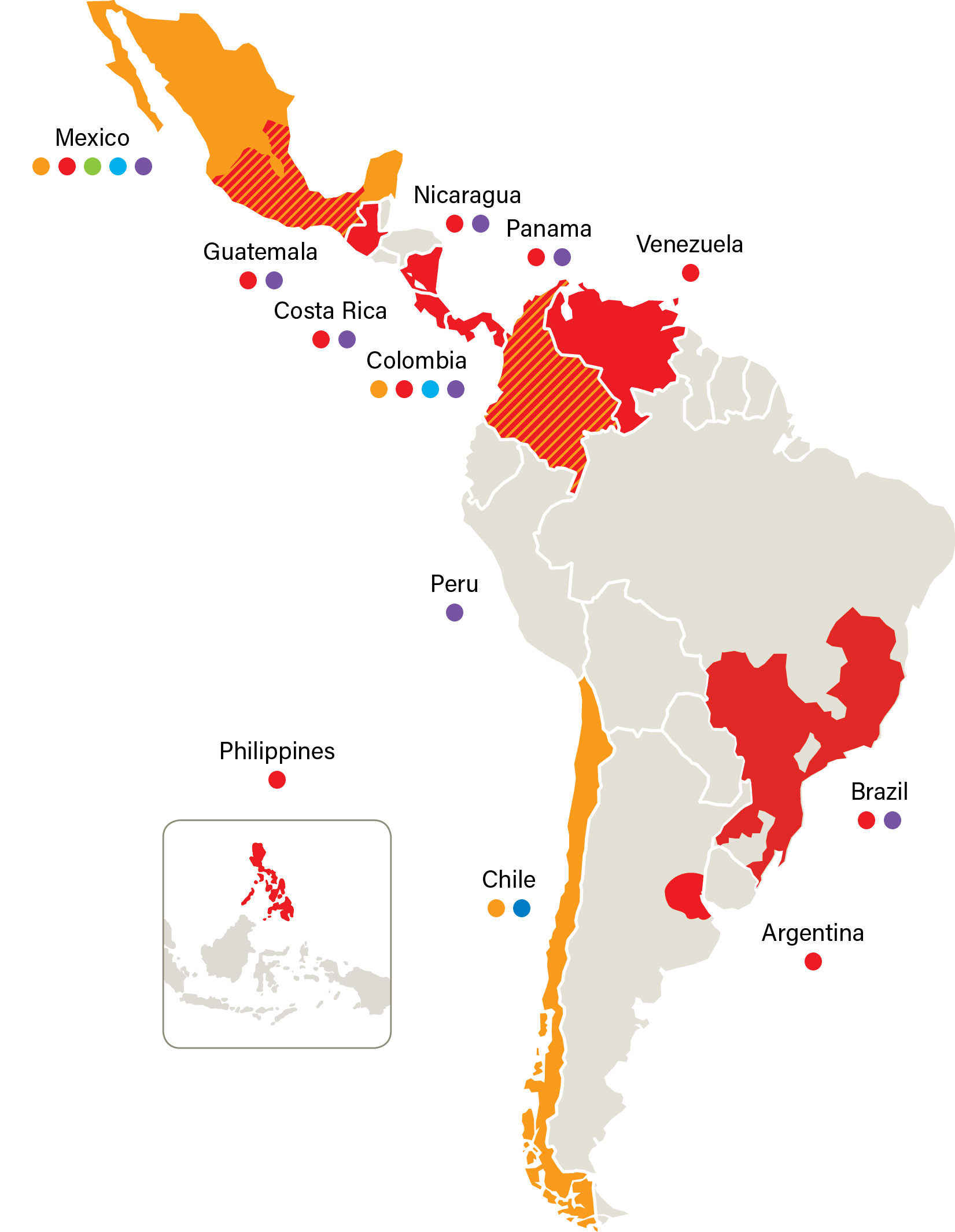 Mexico and Colombia |
