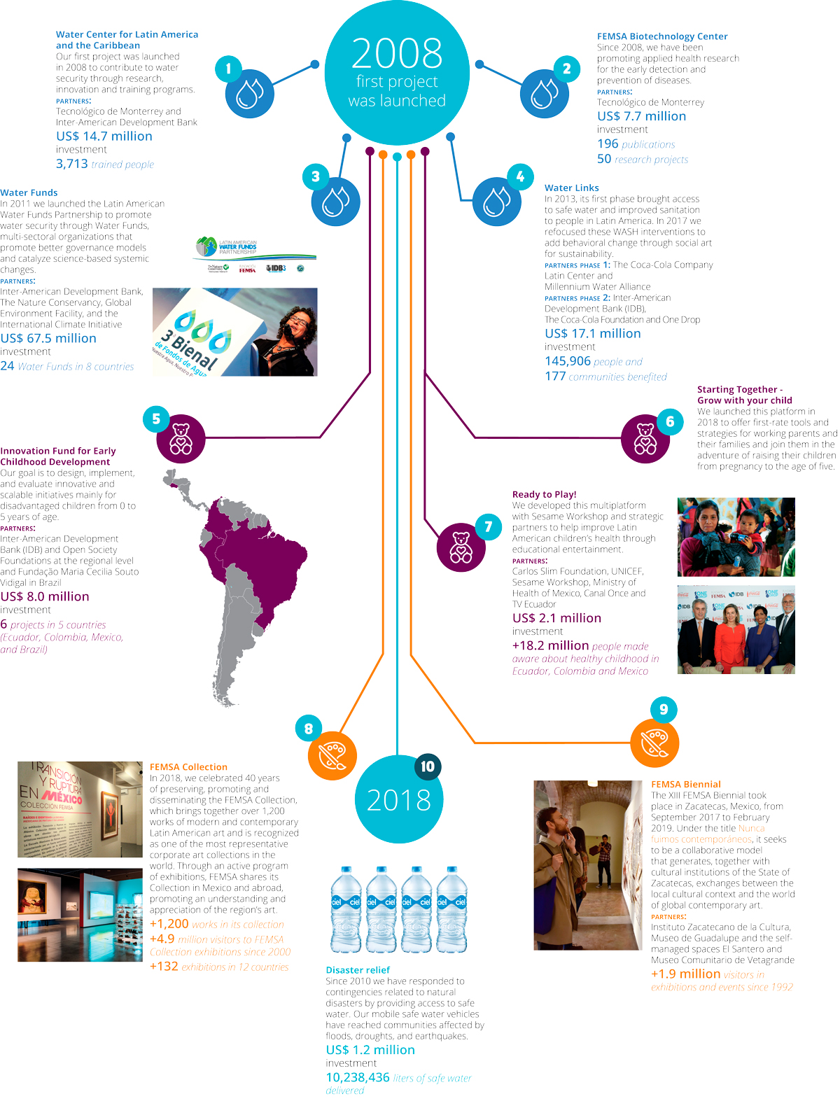 FEMSA Foundation’s mission is to use social investments to make a positive impact in people’s lives and build stronger and more sustainable communities everywhere we operate. Working with more than 250 partners in 18 countries, we look to identify, replicate and scale innovative solutions and approaches that succeed.