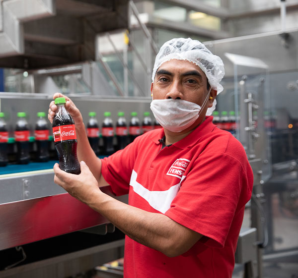 As a leading bottler, we are committed to “World Without Waste”, a global initiative led by The Coca-Cola Company, which includes 2030 targets for collecting and recycling the equivalent of 100% of the packaging we sell, as well as integrating 50% of recycled PET resin into our bottles.