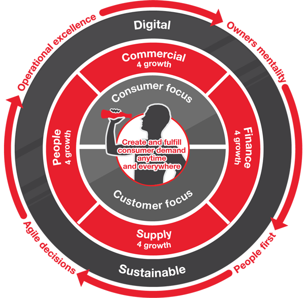 As part of our commitment to strengthen our organization, eliminate redundancies, and free up resources to support our growth, in 2019 we embarked on our Fuel 4 Growth program—a set of initiatives to create a leaner and more agile organization that is fully focused on its consumers. Through four target areas of transformation—People, Commercial, Finance, and Supply—we are fueling new growth opportunities across our business.